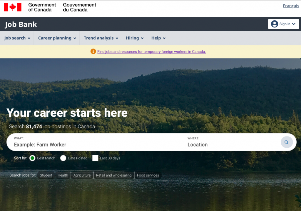 La página oficial de empleos del gobierno ha creado una sección especial de ofertas laborales para trabajadores extranjeros, las cuales son supervisadas por el gobierno, con salarios competitivos dentro del territorio canadiense, con todas las garantías y derechos de los que gozan los residentes.