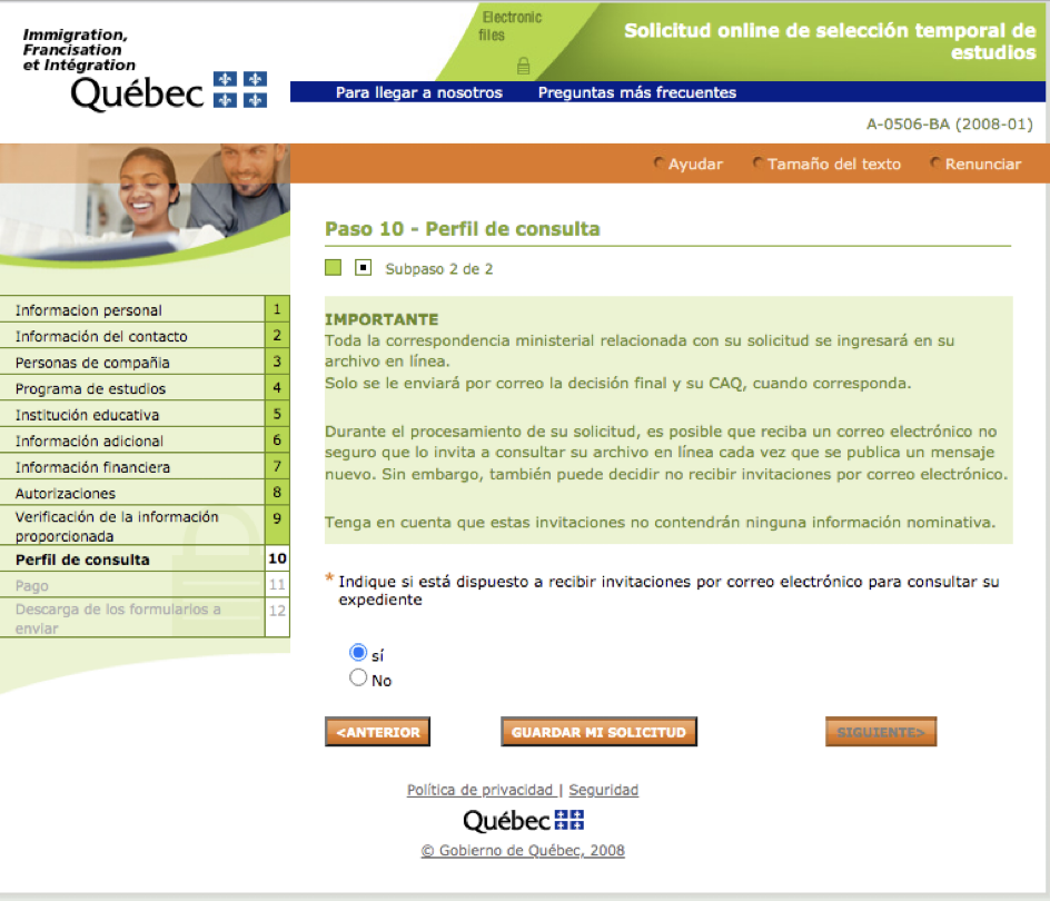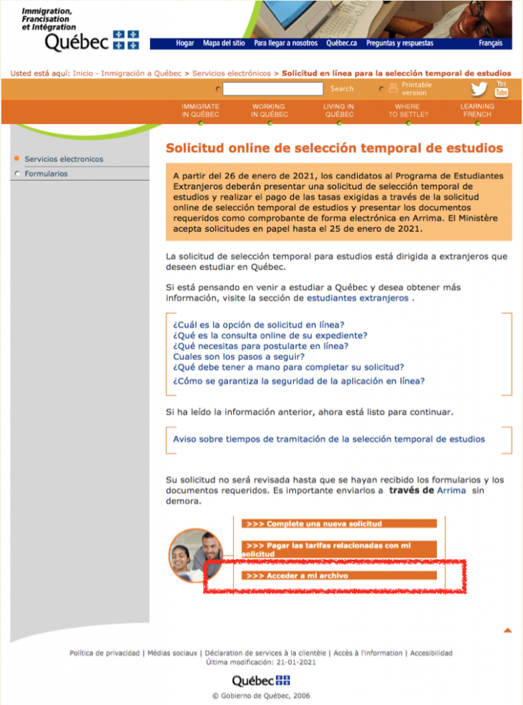 EN TU PERFIL DE ARRIMA PODRÁS VER EL ESTADO DEL PROCESO, PERO LA RESPUESTA LA PODRÁS DESCARGAR UNICAMENTE EN ESTE PORTAL (Inmigración Quebec)