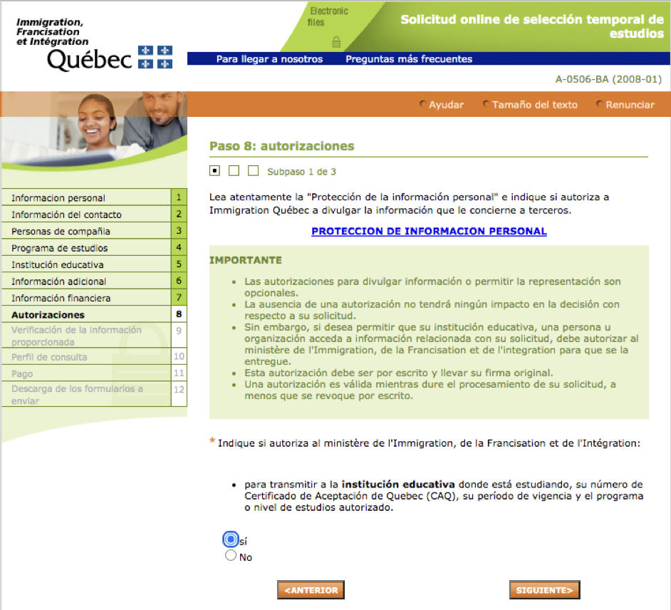 La información financiera se deberá proporcionar en detalle para la solicitud de permiso a Canadá, en este caso que estamos solicitándole a Quebec, no será necesario.