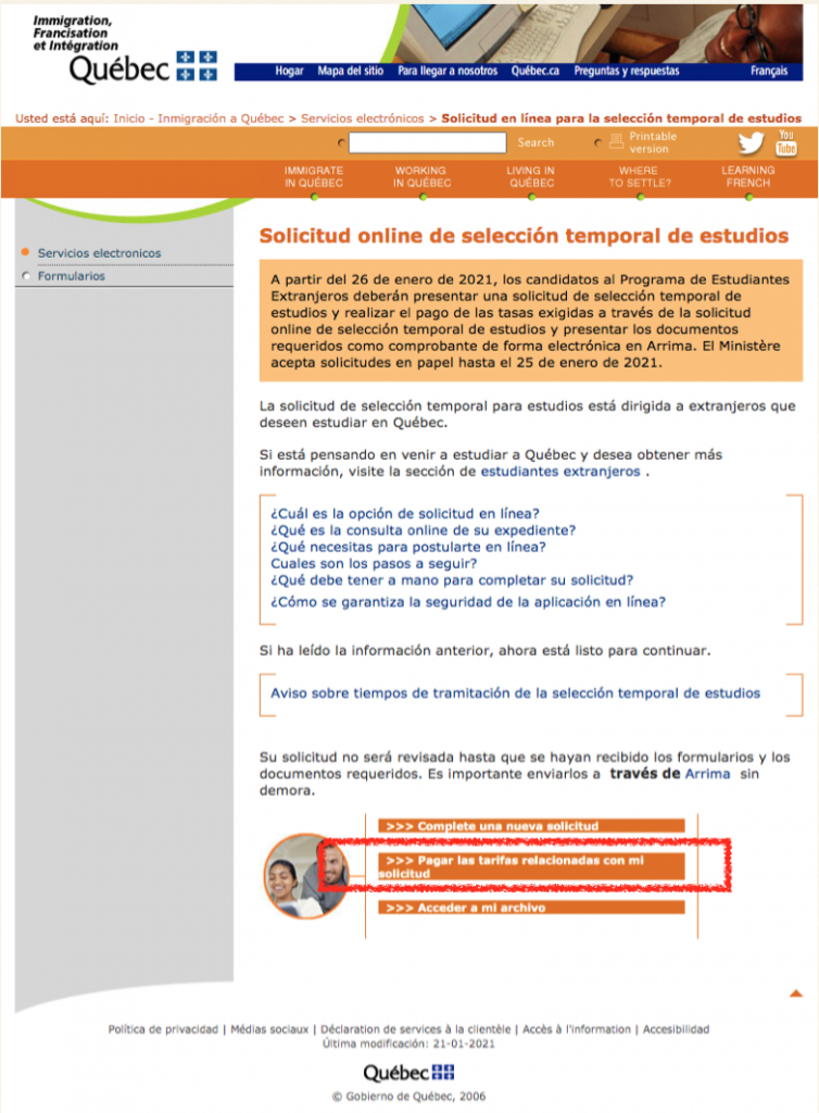 Luego iremos a cargar estos documentos a través del portal ARRIMA, la respuesta de tu solicitud de CAQ, la encontraras de nuevo en este portal (Inmigración Quebec) y no en ARRIMA.