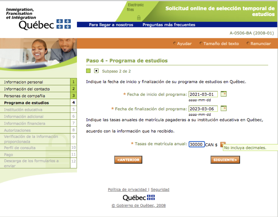 En cuanto tengas tu LOA, debes hacer la solicitud del CAQ (certificado de aceptación de Quebec), Que no es otra cosa que una solicitud al gobierno de Quebec para estudiar en su territorio, y se debe hacer siempre que se vaya a estudiar mas de 6 meses en territorio canadiense.
